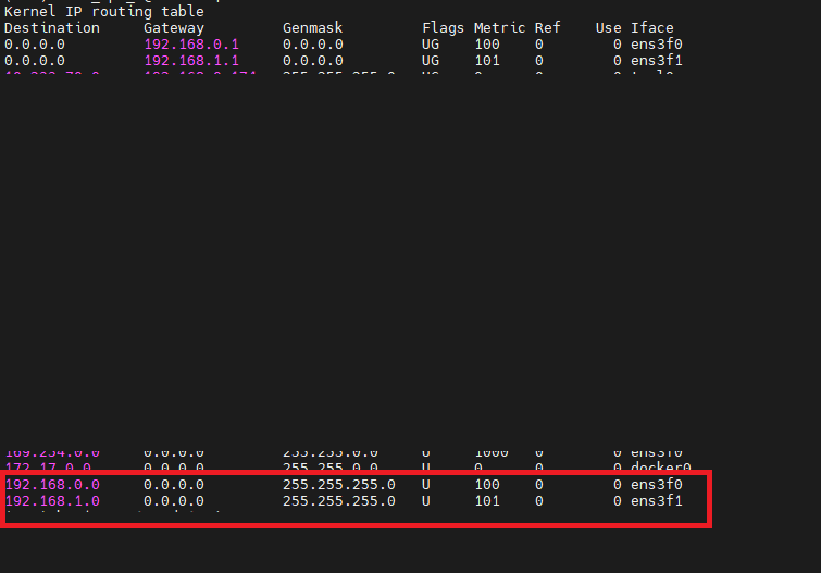 무슨상황이냐면 외부ip와 연결된 내부 ip는 192.168.0.1 대역대인데 192.168.1.1대역대가 우선순위가 더 높아서 연결이 안되었다는 얘기입니다.