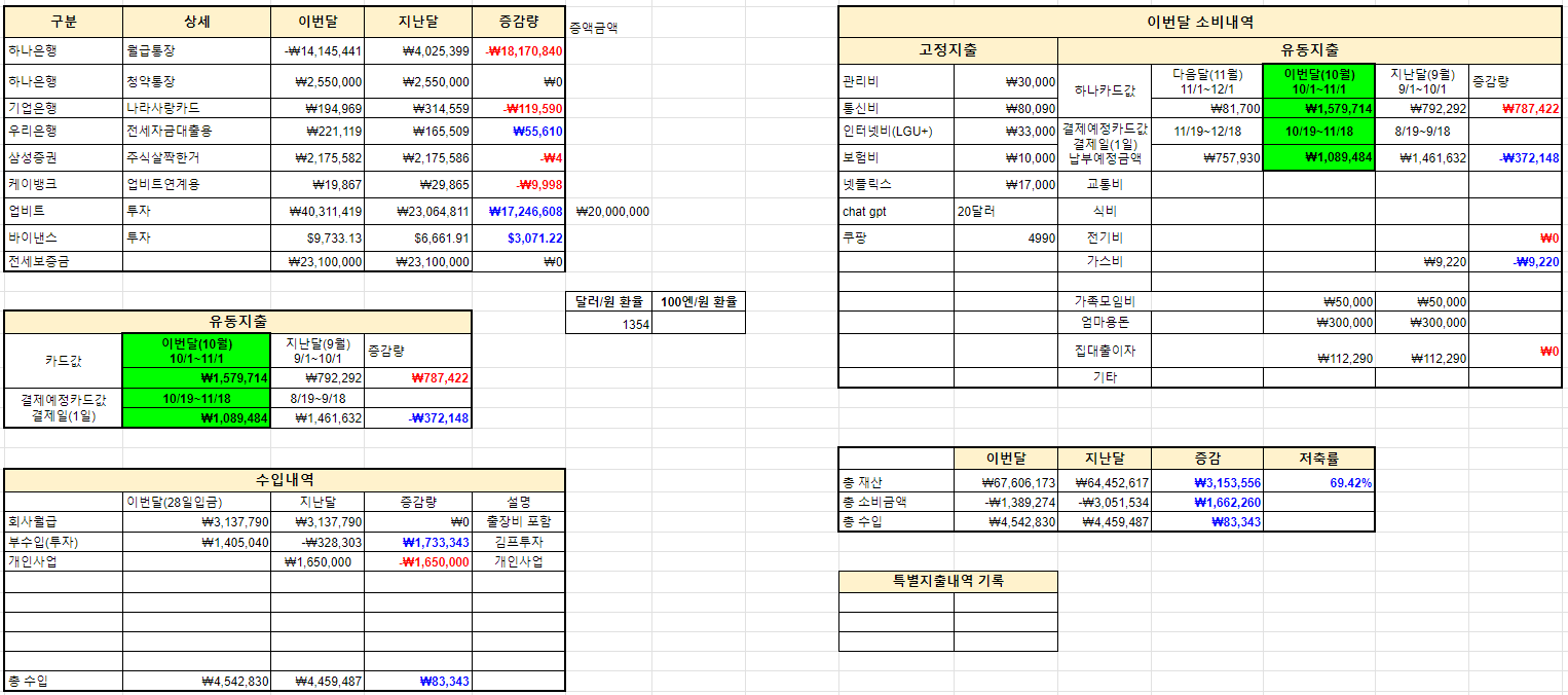 안녕하세요. 이번 달은 드디어 다시 마이너스 통장을 이용한 달입니다. 2천만원을 꺼내서 김프투자에 증액했습니다. 거래기록상 90만원정도인데 50만원이 어디서 펌핑되었는지 140만원 잔고가 증가했다고 나오네요 제가 뭘 잘못기록했는지 잘 모르겠습니다. 덕분에 1년중에 저축한 돈이 가장 큰 달입니다. 물론 다음달 마통 이자가 빠져나가긴하겠지만 그걸 감안하더라도 년중 최고치네요. 매 달 그래도 평균적으로 꽤 많은 금액이 늘어나니 모으는 재미가 있습니다.