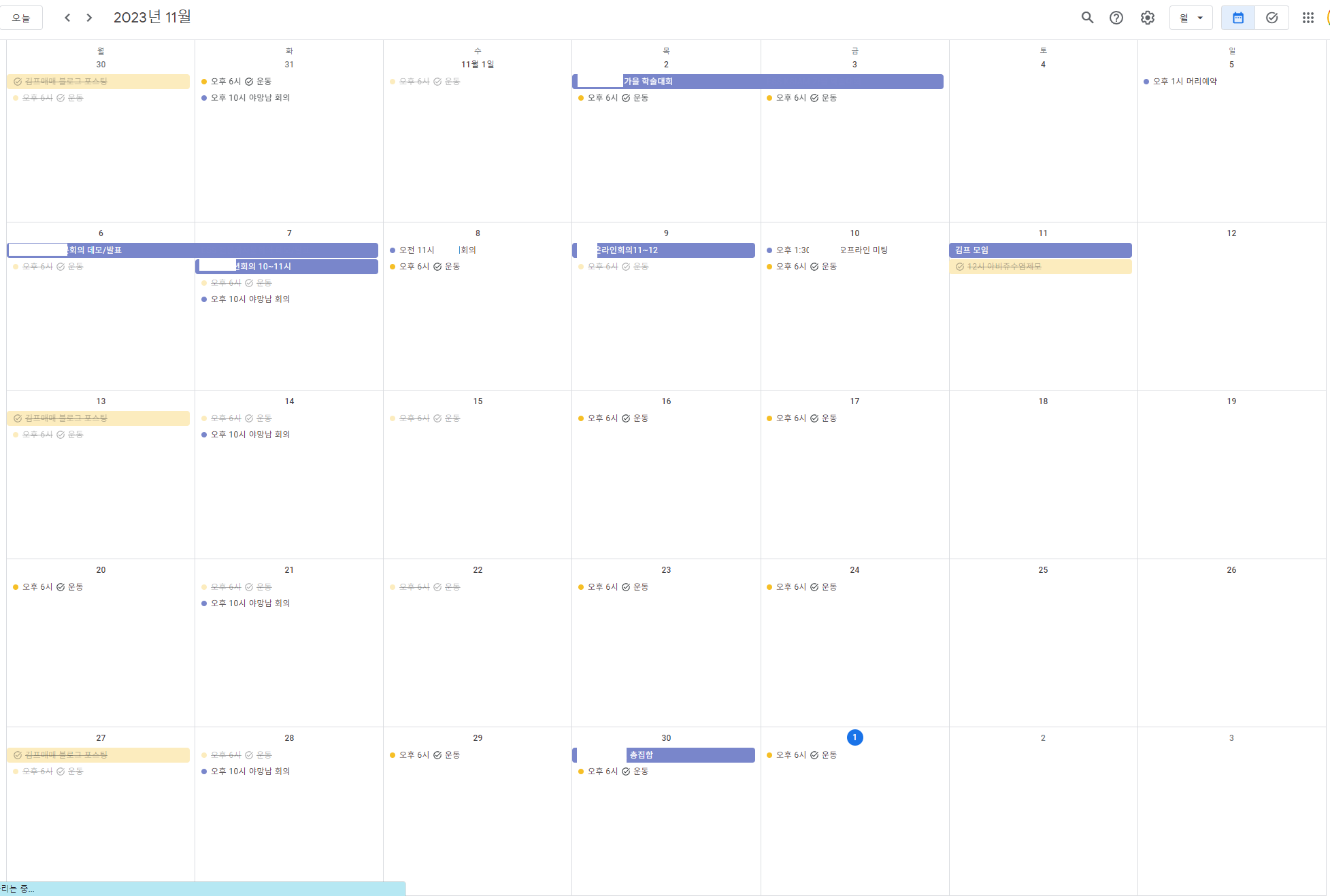 회사업무가 연말이라 엄청 바쁩니다. 11월을 돌이켜보니 회의도 많았군요. 야근도 간간이 하고 ... ㅠ