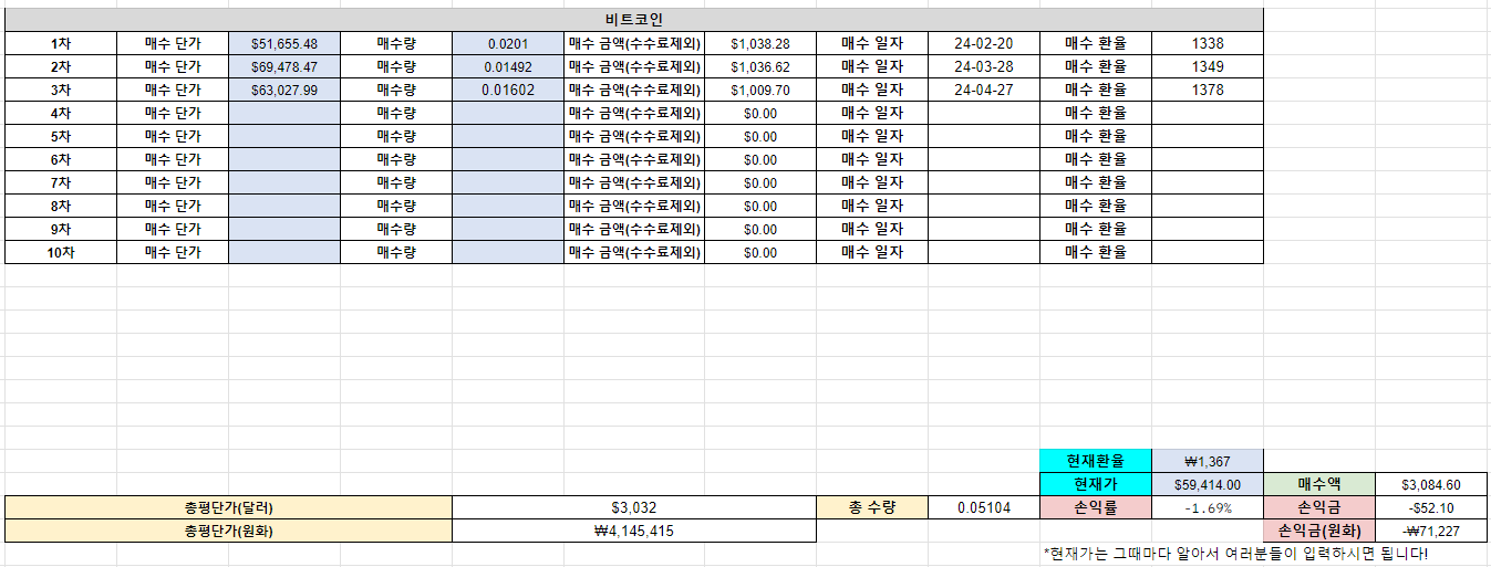 비트코인 DCA는 3회차가 되었습니다. 현재 비트코인 가격이 8천만원까지 꼬꾸라져서 손해로 변했지만 마음이 왠지 편합니다. 들어간 액수가 별로 안된다는 사실도 있지만 어차피 계속 모을건데 라는 마인드 덕분에 마음이 편하네요.