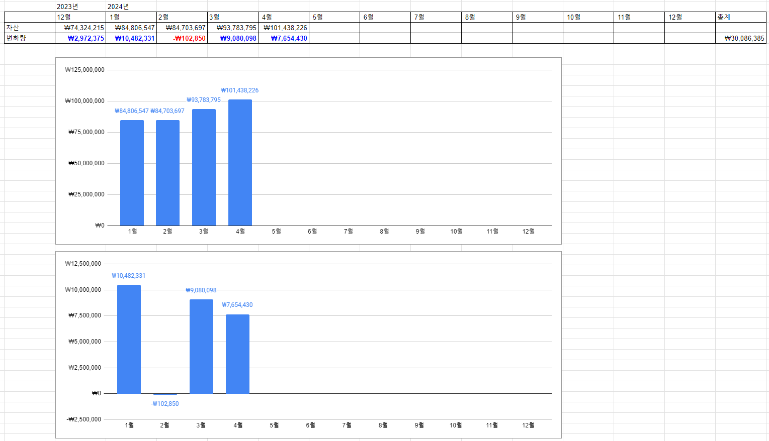 (지난달 자산 변화량을 잘못 계산되었었음, 전기세 연체되서 2배로 냈음)