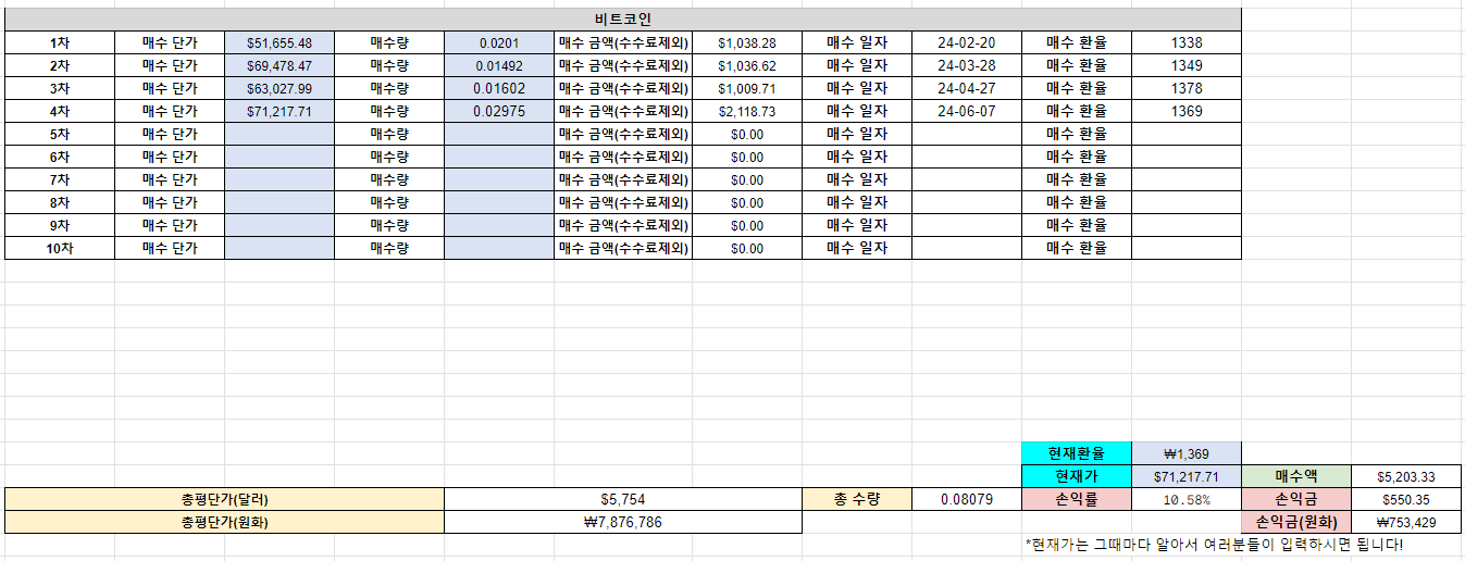 비트코인 DCA는 매수타이밍이 조금 늦었지만 4회차가 되었습니다. 사실 이번에 늦은 이유중의 하나로 단순 DCA가 좋은지, 테더와 비트 2개의 리밸런싱이 좋은지 테스트를 해보다가 늦게 투자하게되었습니다.