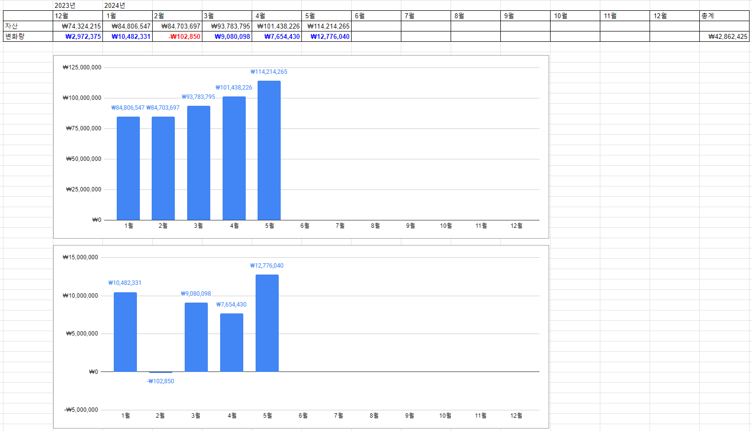 지난달에 자산 1억을 넘겼다고 굉장히 좋아했었는데 비트코인 가격도 제자리로 돌아오고하면서 느긋하게 자산이 늘어났던 시기였습니다.