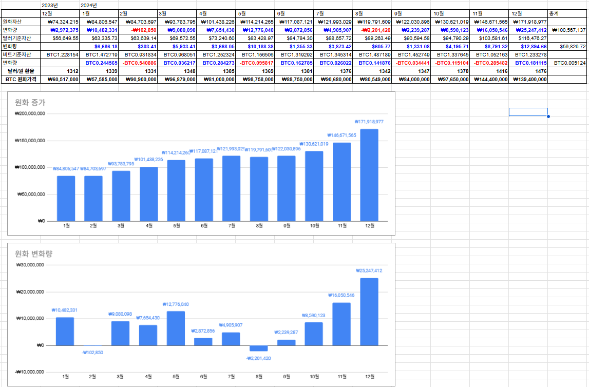 12월 31일 딱 자산을 찍어보니 올 한 해 거의 딱 1억을 모았네요. 전체 자산은 이제 1.7억이 되었습니다. 내년, 내후년엔 2억, 3억이 되어있으면 좋겠네요.