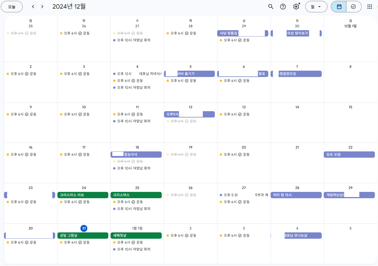 12월도 뭔가 휘뚜루 마뚜루 지나간 느낌입니다. 뮤지컬 공연 연습하느라 운동도 많이 빠졌는데 살이 많이 붙은느낌입니다.