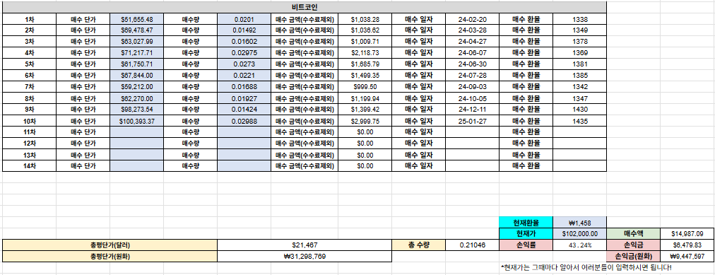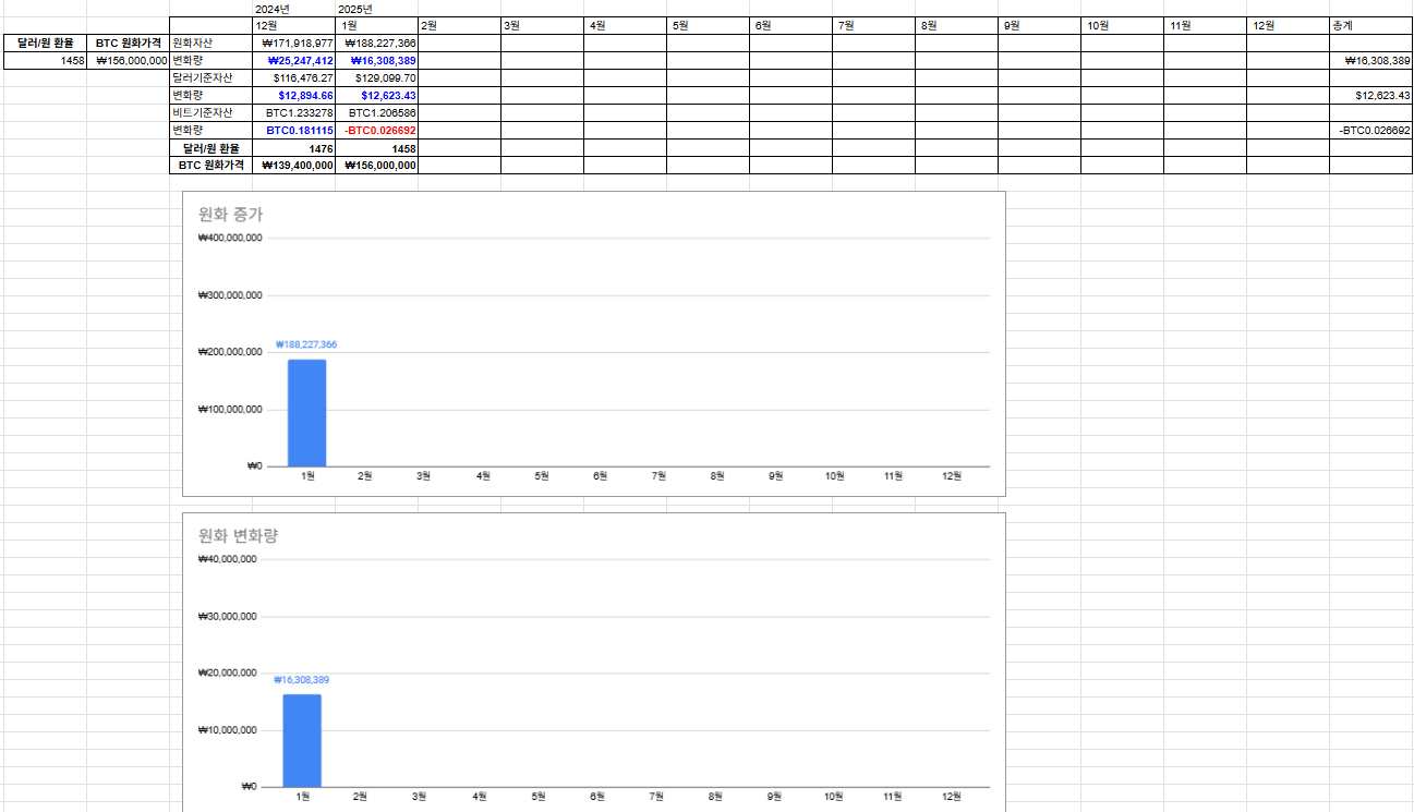 아무튼 25년이 되고 출발이 좋습니다. 자산도 거의 1.8억이 되었고 비트코인 DCA상황도 나쁘지않습니다. 이번엔 좀 과감하게 3000달러정도를 샀는데요 빨리 모으고싶네요