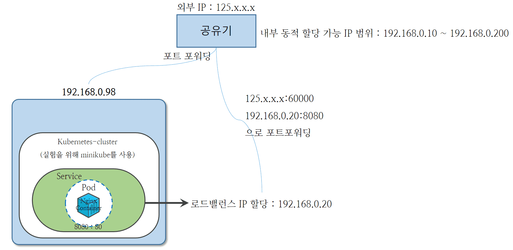 실험을 위해서 단일 노드를 활용한 minikube를 사용하였고 metallb를 설치하고 IP대역대를 설정해 주면 서비스를 배포할 때 로드밸런서 타입으로 정해진 IP대역대에서 배포를 해준다.