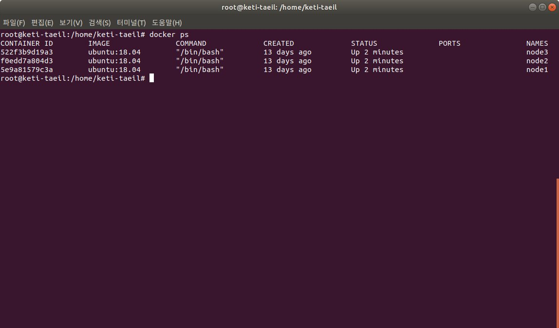 나 같은 경우 일단 ubuntu 이미지를 세 개 만들어서 실행했다.