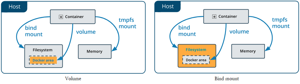 차이점이라면 볼륨은 도커 영역안에서 관리된다는 점이다.