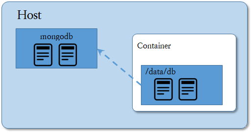 이렇게 되는데 Host의 mongodb 디렉토리가 컨테이너 안의 /data/db 디렉토리에 마운트된다.