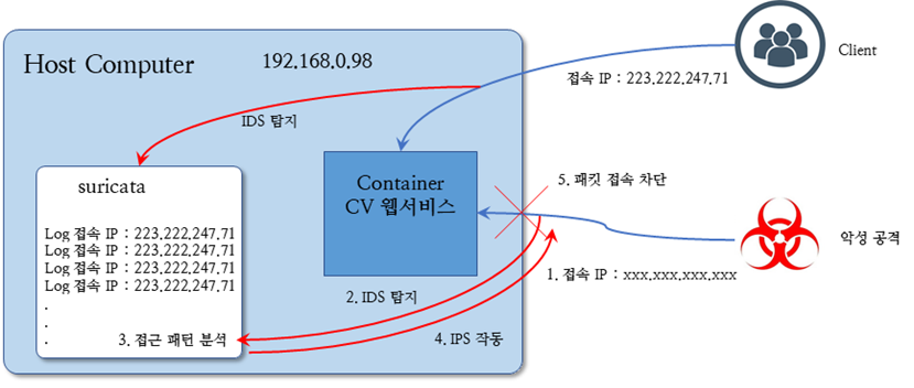 우선 IDS가 침입 탐지 시스템이었습니다. 네트워크로 들어오는 트래픽에 대해서 단순히 탐지하는 기능이었죠