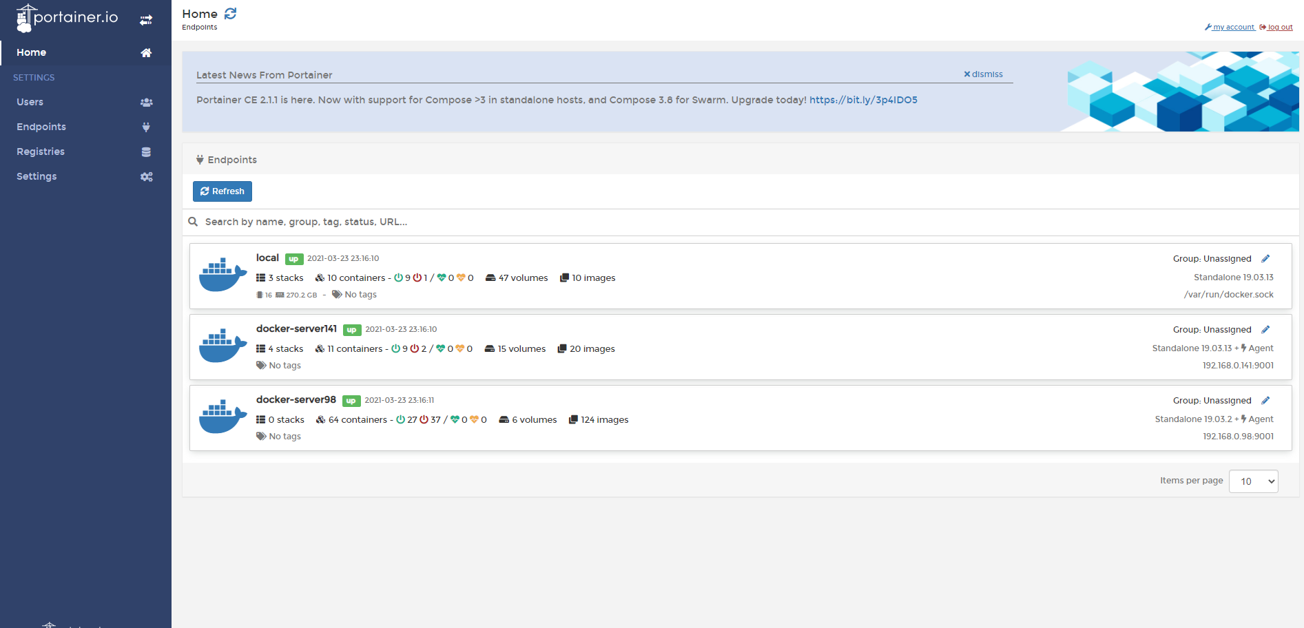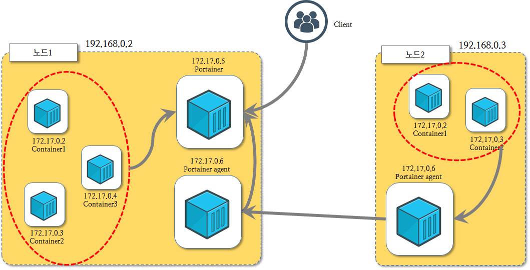무엇보다 로컬상의 Docker 뿐만아니라 다른 노드의 Docker도 agent를 통해 관리가 가능합니다.