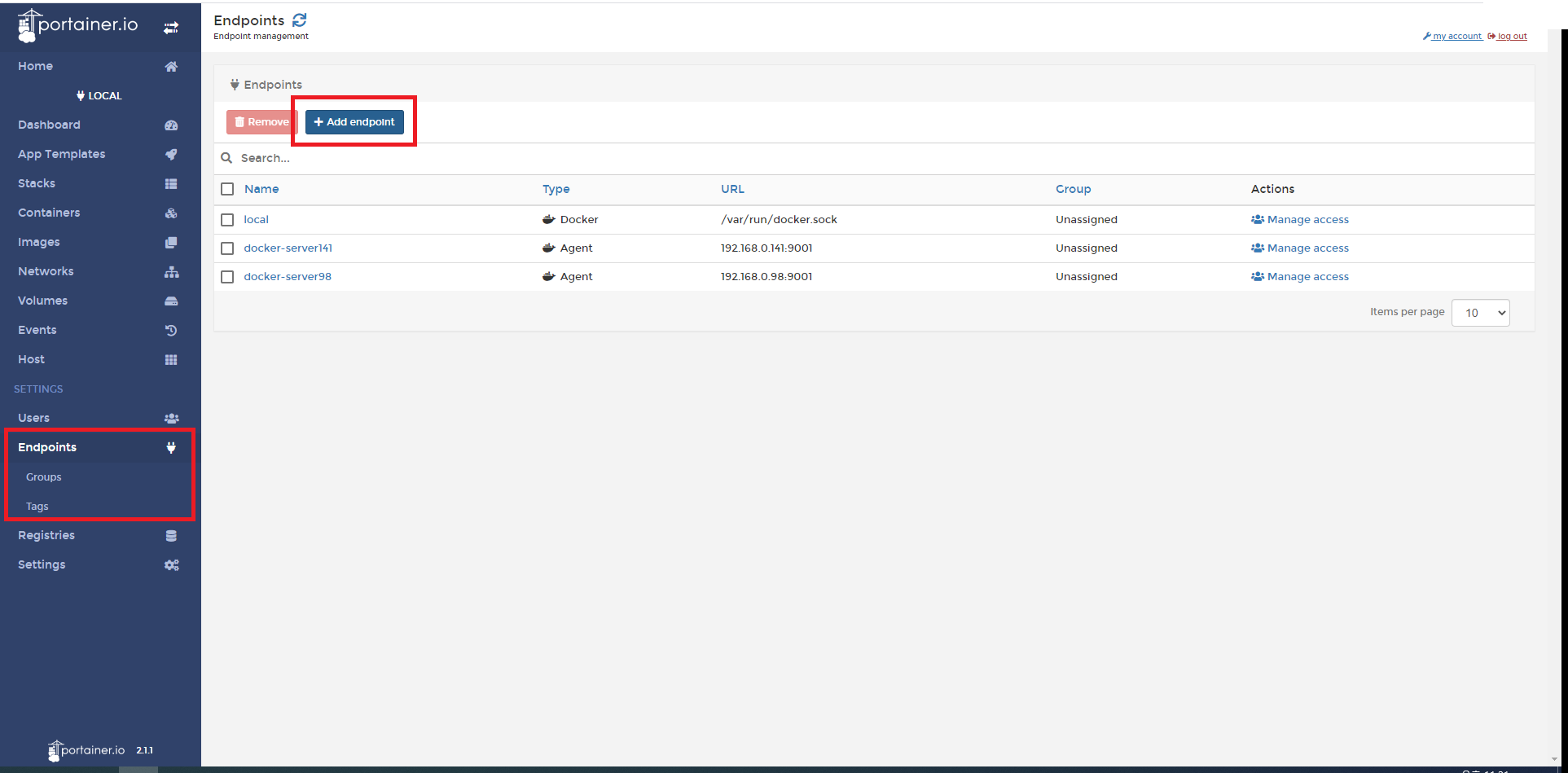 그리고 이제 portainer로 접속하여 엔드포인트 추가를 눌러줍니다.