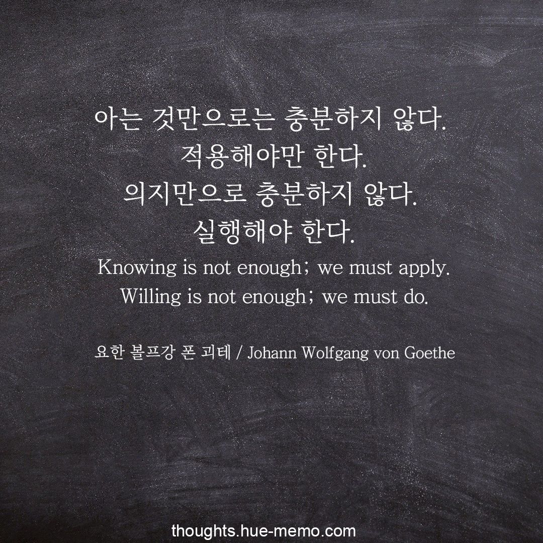 아는 것만으로는 충분하지 않다. 적용해야만 한다. 의지만으로 충분하지 않다. 실행해야 한다.