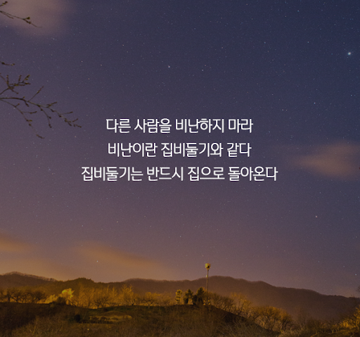 다른 사람을 비난하지 마라. 비난이란 집비둘기와 같다. 집비둘기는 반드시 집으로 돌아온다.