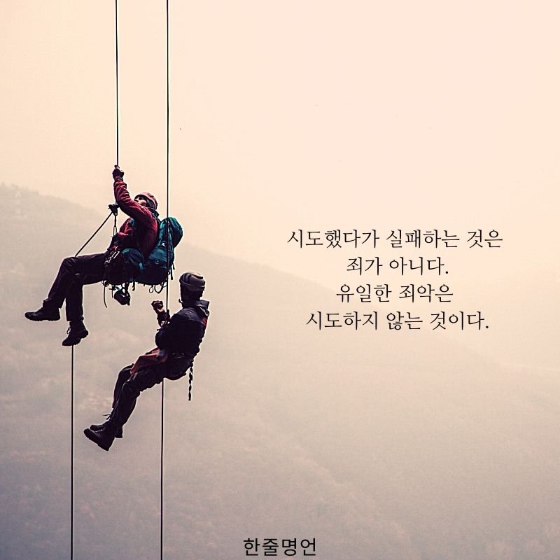 시도했다가 실패하는 것은 죄가 아니다. 유일한 죄악은 시도하지 않는 것이다.